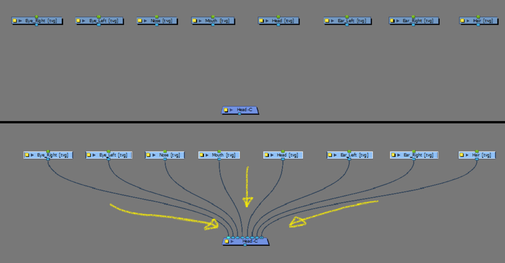 However, the script is non-specific to the node it plugs into. You can plug nodes into cutters, drawings, layer-art dividers, etc. So if there is a node on the other side of the rig that you need to plug down into, it might be more efficient to select them both and let it auto link, instead of dragging across the screen.